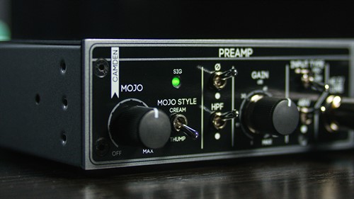 Perhaps most crucially and unlike transformer-based preamps, when you need something clean and transparent for a particular session/source, Mojo can be completely bypassed and removed from the signal using the pots’ built-in, true-bypass switch to reveal the true clarity of the Camden preamp design.