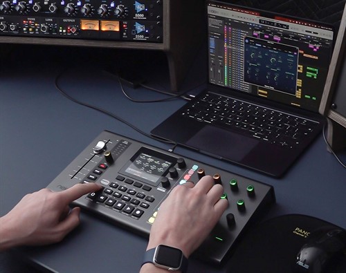 Panorama CS12 is a dedicated DAW channel strip controller initially supporting Logic Pro 10.8 or higher. The compact desktop controller’s liberating workflow is optimized for direct plugin control with one button access to Logic Pro’s plugin slots, sends and channel mixer.