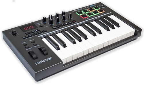Impact LX25+ är ett MIDI-klaviatur med 25 st tangenter, 9 st reglar, 8 st rattar, 8 st trumpads och 6 st transport-knappar. Kompatibelt med Bitwig, Cubase, Digital Performer, FL Studio, GarageBand, Logic, Nuendo, Reaper, Reason, Sonar och Studio One. Levereras med Bitwig Studio 8-Track och Cherry Audio Plugin Bundle som innehåller Mercury-6, PS-20, OctaveCat, DreamSynth och Starburst-201 Tape Echo.