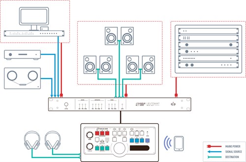 The Lieutenant is designed to be the true command center of the studio. It allows you to select between four sources and route them to three destinations, featuring a relay-based volume control. Additionally, its built-in power sequencer can manage the studio’s power distribution across three independent zones. It includes a separate Cue loop with headphone output, complete with a talkback system, as well as a master headphone output.Among its four input sources, two are stereo, balanced analog, one is a digital S/PDIF source, and one is Bluetooth.