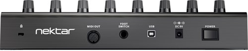 Then there’s the transport section for DAW Control: With Nektar DAW Integration everything’s set up for instant control of your DAW’s transport functions from Aruba. In this mode, the pots let you set locators, select tracks, navigate and even set up a connected footswitch for transport control. Without DAW integration, the transport buttons can be assigned to MIDI functions or to control the sequencer. The 2 footswitches are also MIDI-assignable.