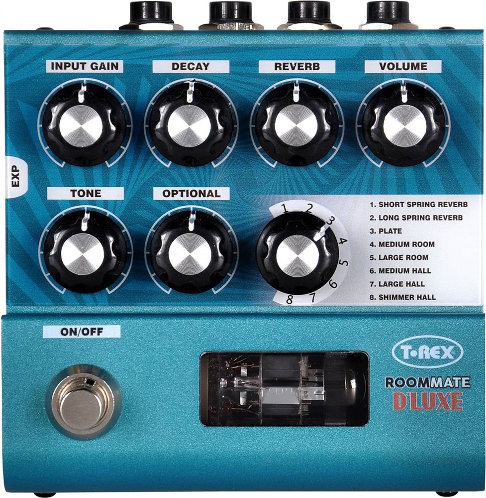 Reverb är mer än en effekt, det är utrymmet runt dina toner som plaserar din ton i ett sammanhang. Denna nya version av RoomMate från T-Rex är en rördriven Reverbpedal med 8 olika presets.