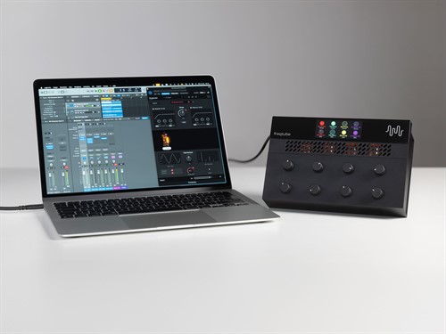 FT1 FreqTube Quad Analog Tubes. True multi-instance hardware running seamlessly as plug-ins with analogue signal path. With FT1 you can run 4-channel tube processor with analogue processing, four mono or two stereo signals with Gain, Drive, Overdrive, Phase and Harmonics connected via USB-C.