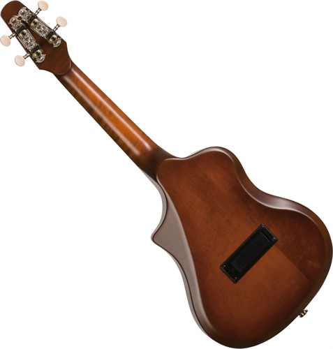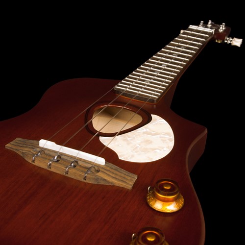This fun-to-play nylon Uke is made of a solid maple body with a solid spruce top; a wood combination that, along with the classic tone of the nylon strings creates a smooth sound with plenty of tonal definition. And thanks to the zero fret, you get a lot of ring and sustain to your tone. The Seagull Uke Steel SG also features a Burnt Umber semi-gloss finish, open-gear tuners, and custom Seagull electronics with easily accessible volume and tone controls at the lower bout. The Seagull Uke Nylon SG Burst maintains a more conventional nylon-string feel, but with a modern take on design and playability.
