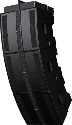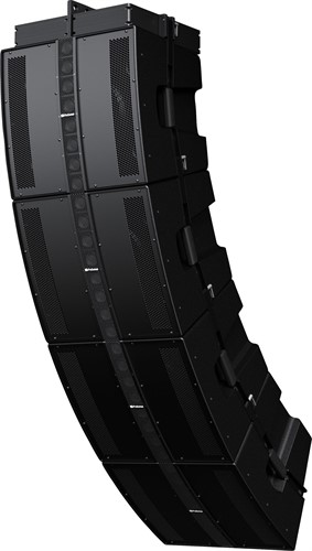 - Continuous-directivity constant curve array with eight 2-inch cone drivers disperses sound 120° horizontally