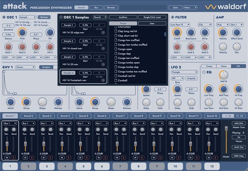 Attack 3 comes with a completely redesigned, scalable interface and a vastly expanded synthesis engine. The new user interface adapts effortlessly to any screen size, while enhanced MIDI Learn lets users define minimum and maximum parameter ranges for expressive performance. Dedicated browsers for kits, sounds, samples, and MIDI mappings keep inspiration flowing without interruption.