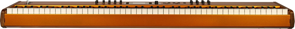 Stage piano. 88 Fatar TP/400 Wood graded hammer action keyboard with ivory feel and aftertouch. New TrS23 sound engine with Acoustic- and Electric modeling plus Synth engine. 4GB samples memory. 300-voice polyphony. 200+ factory sounds and 250 user programs. 8 indipendent Insert effects plus new Amp simulation. 2 programmable sticks, 13 encoders with push functions and 22 buttons. 2,8" hi-res color TFT display. Exclusive warm-metallic finish. Rugged and elegant design with solid aluminum chassis and high-end wood keybed.